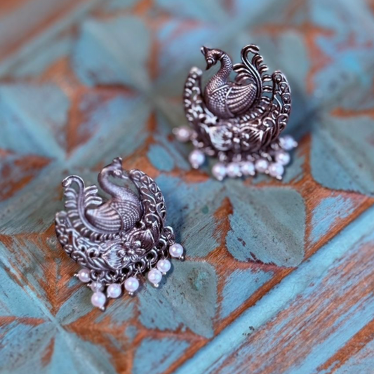 Oxidized Silver-Plated Lotus Jhumka Earrings