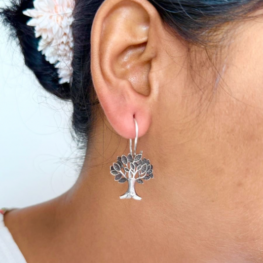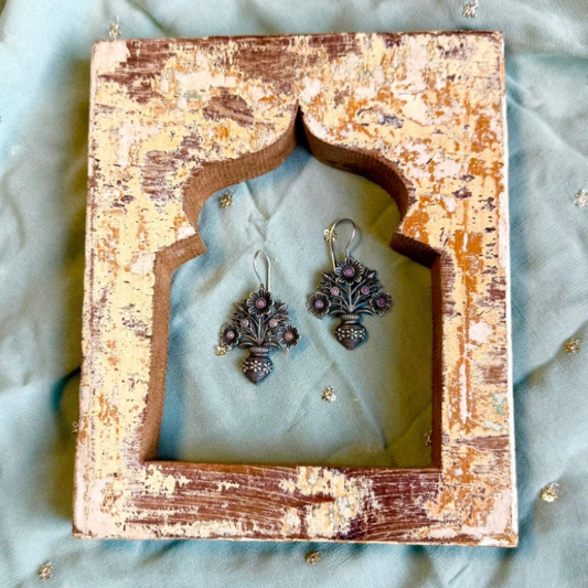 Oxidised silver earrings are often called antique or rustic jewellery because of their dark, matte finish, which makes every motif stand out. This antique effect allows them to work beautifully with vibrant sarees, lehengas, or even casual kurtas.