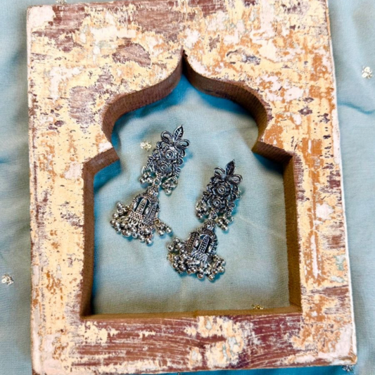 Rustic Royalty Oxidised Temple Jhumka Earrings