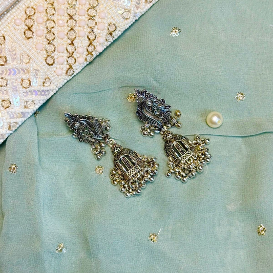 Oxidised earrings carry a timeless charm that instantly elevates any festive outfit. Crafted through a special tarnishing process, they bring out a rustic, antique finish that feels both vintage and elegant.