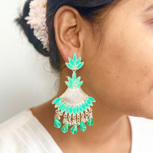 Many oxidised earrings for women feature tribal, Mughal, or temple-inspired designs, giving them cultural richness. Popular motifs include elephants, peacocks, and florals, often combined with ghungroo charms or beads for festive flair. Unlike heavy gold jewellery, oxidised earrings such as gold toned earrings are usually lightweight, making them ideal for long hours of wear at festivals or weddings.