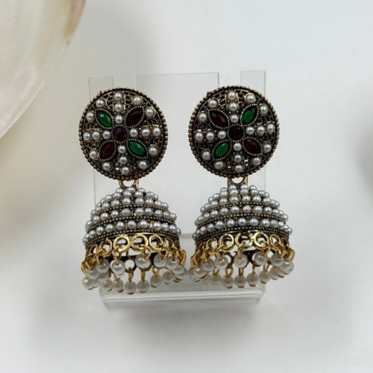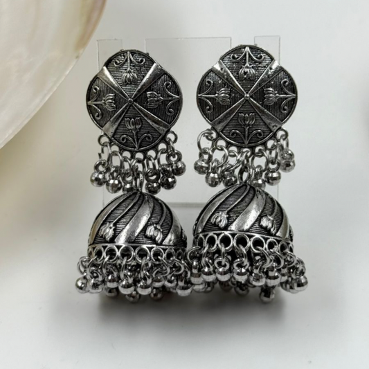The Festive Flow Trio: Secret Santa Oxidized Jhumka Earring Set
