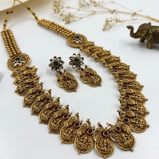 Traditional Lakshmi Temple Necklace Set with Kundan & Ruby Detailing