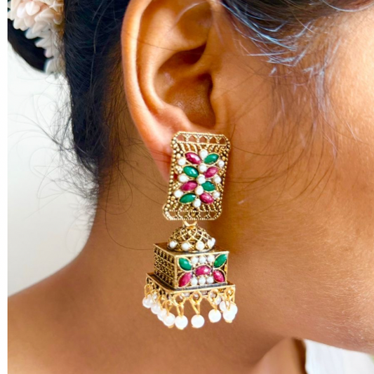 Gorgeous Temple Jewellery Set - Pearl Beaded with Jhumkas