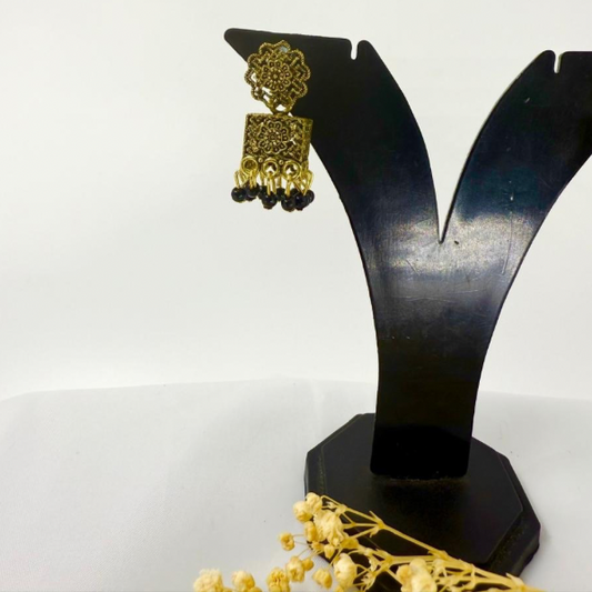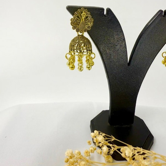 Vintage Gold Toned Jewellery Set - Earrings & Vaddanam